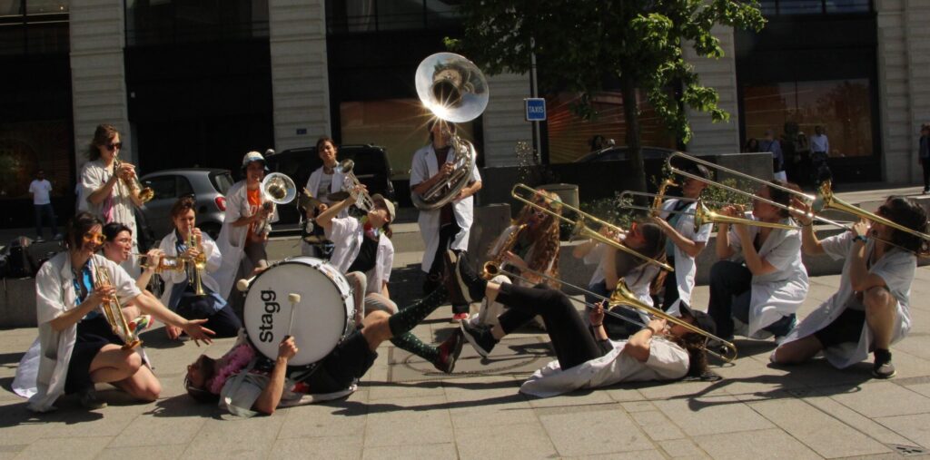 Nous jouons sur contrat pour n’importe quel évènement : on ambiance les foules, tout en réchauffant leurs cœurs et en les faisant danser au rythme de nos morceaux avant même qu’ils ne s’en rendent compte ! Nous participons également à la vie étudiante de notre fac en évènement et vous pouvez nous retrouver dans les rues de Paris jouer le weekend !